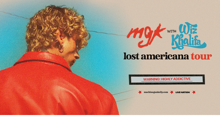 mgk is bringing THE LOST AMERICANA TOUR to PNC Music Pavilion Charlotte on 5/31/26 + Coastal Credit Union Music Park Raleigh on 6/2 with special guests Wiz Khalifa & DE'WAYNE! Click HERE for tickets!